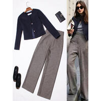 เสื้อคาร์ดิแกนขนสัตว์ + กางเกงยีนส์ + รองเท้าผ้าใบ