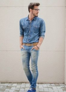 กางเกงยีนส์สีน้ำเงิน + เสื้อสีเบจ + รองเท้าหนังกลับสีน้ำตาล แล้วใส่นาฬิกากับแว่นกันแดด ก็กลายเป็นลุคสุภาพที่ใส่ได้ทั้งวัน