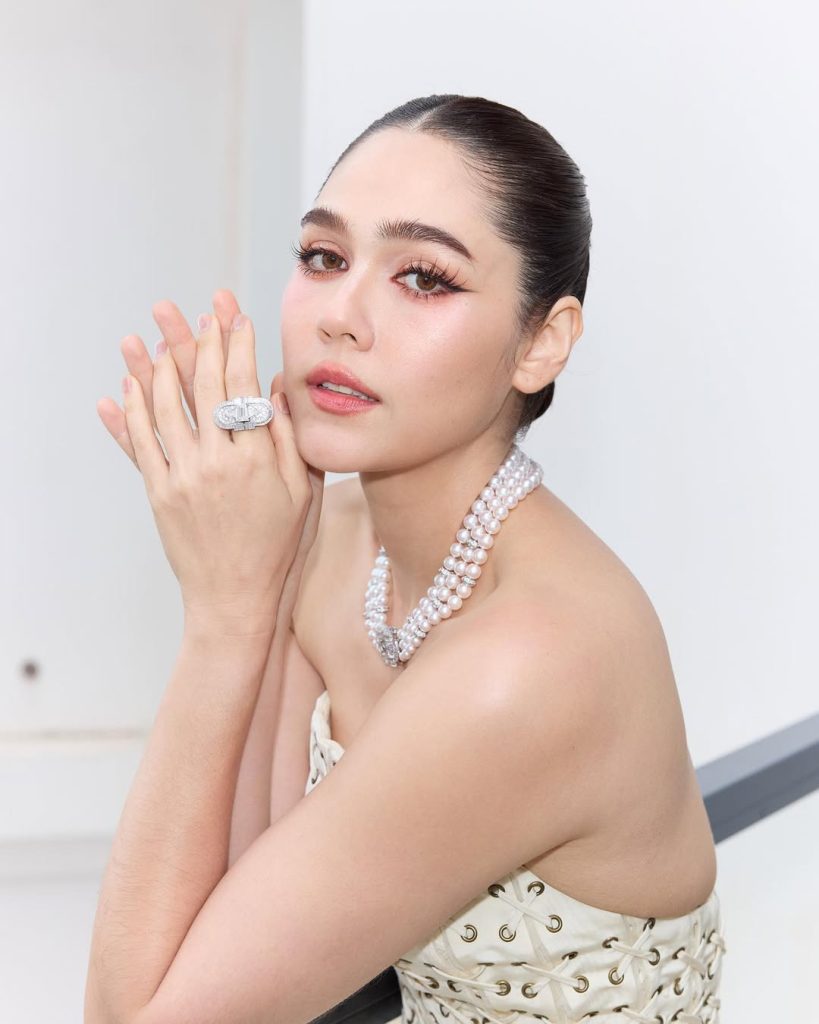 เธอใช้เส้นอายไลเนอร์ชัดคม ผสานกับขนตาหนาเด้ง ทำให้ดวงตาดูโดดเด่นในทุกมุมกล้อง