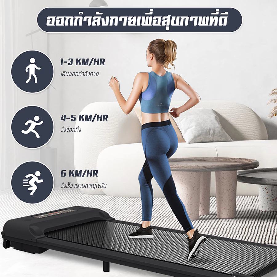 ลู่วิ่งไฟฟ้าขนาดเล็กสำหรับการเดินและวิ่งเบา ๆ เหมาะกับการใช้งานในบ้านหรือออฟฟิศ มอเตอร์ 2.0 HP ความเร็ว 1–6 km/h