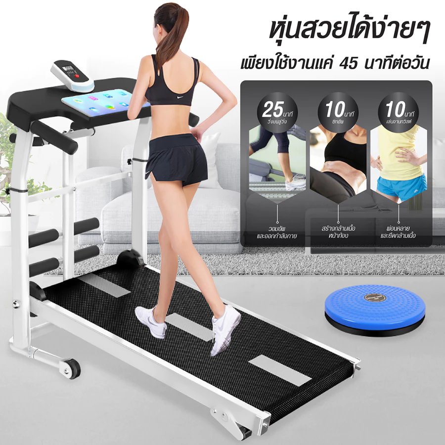 ลู่วิ่งแบบ manual ที่เน้นความเรียบง่ายและอเนกประสงค์ ระบบสายพานไร้ไฟฟ้า ใช้แรงจากการเดินจริง เพิ่มการเผาผลาญ