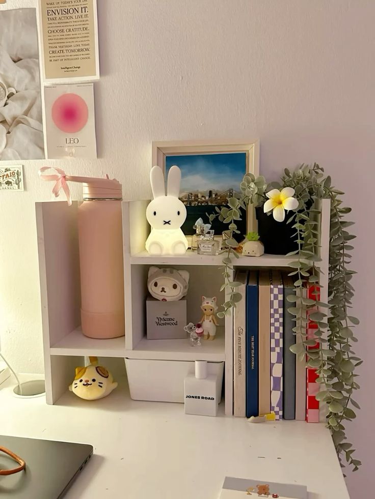 สำหรับคนมีด้อม การมีชั้นวางเล็ก ๆ ที่เต็มไปด้วยของรักของสะสมบนโต๊ะทำงาน ช่วยเปลี่ยนโต๊ะธรรมดาให้เป็นมุมปล่อยพลังใจ หันไปมองก็รู้สึกดี แม้กำลังทำงานหนักอยู่
