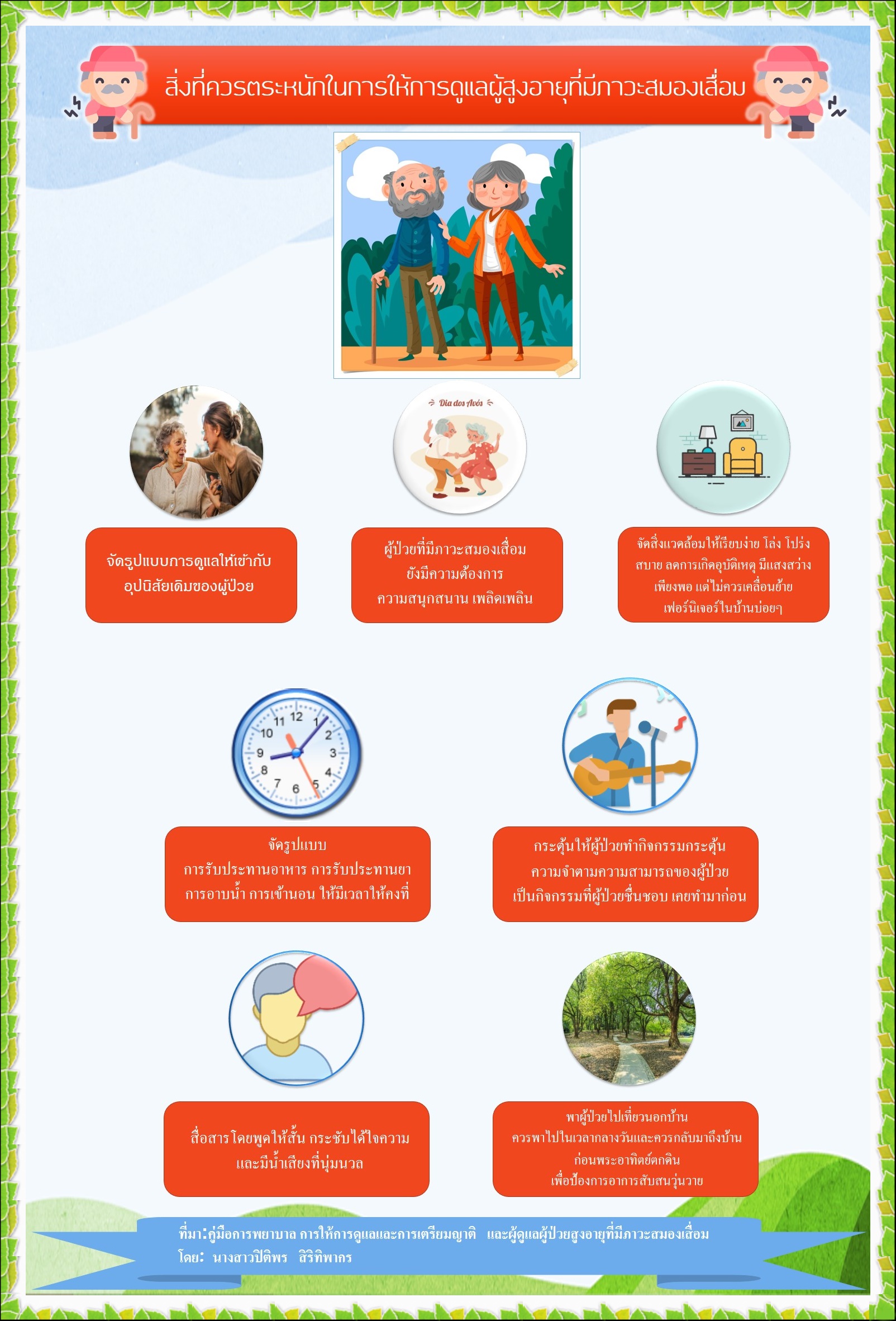 การดูแลผู้สูงอายุที่มีภาวะสมองเสื่อมต้องใช้ทั้งความเข้าใจ ความอดทน และการปรับวิธีสื่อสาร อินโฟกราฟิกนี้ชี้ให้เห็นจุดที่ผู้ดูแลควรตระหนักเป็นพิเศษ