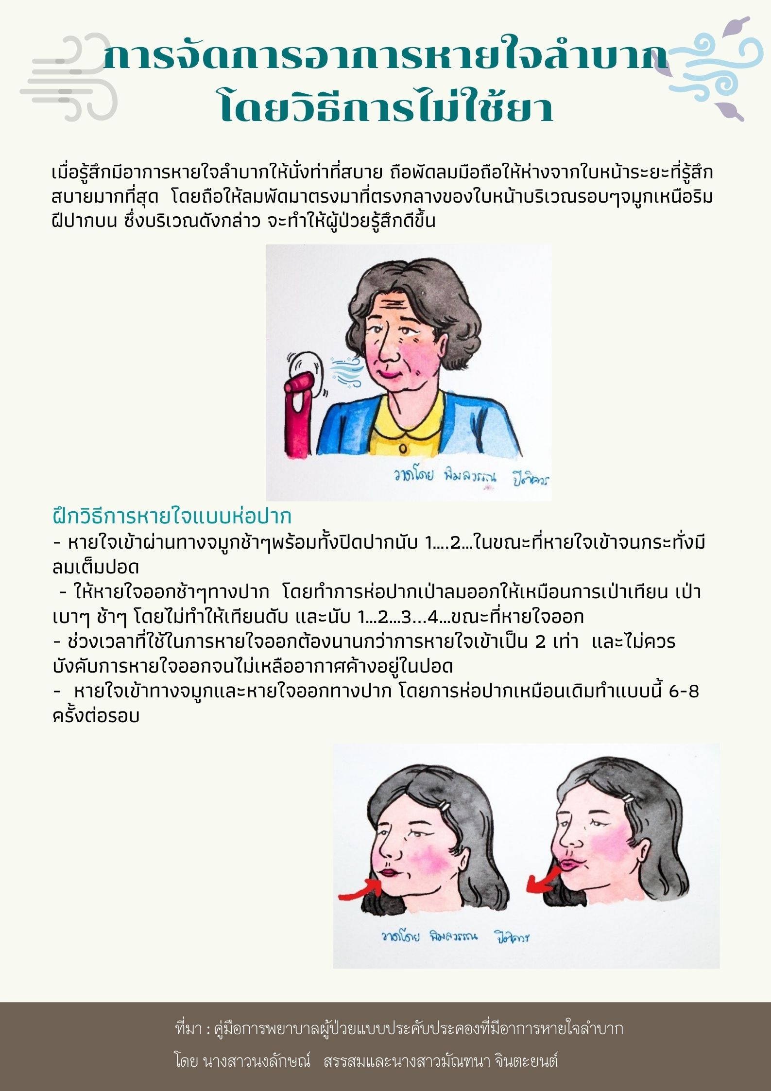 นอกจากยาแล้ว ยังมีหลายวิธีช่วยบรรเทาอาการหายใจลำบาก เช่น ท่าทาง การใช้พัดลม การฝึกหายใจ หรือการปรับกิจกรรมในแต่ละวัน