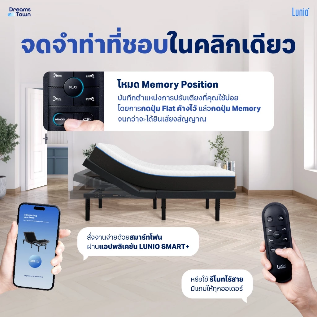 หากคุณกำลังมองหาวิธีอัปเกรดคุณภาพการนอนให้ดีขึ้นอย่างชัดเจน ไม่ใช่แค่เปลี่ยนที่นอน แต่เปลี่ยน “ประสบการณ์การนอนทั้งระบบ” เซ็ต Lunio Smart Rise Adjustable Bed + ที่นอน Lunio Gen4 คือคำตอบที่ออกแบบมาเพื่อแก้ปัญหาการนอนอย่างครบวงจร