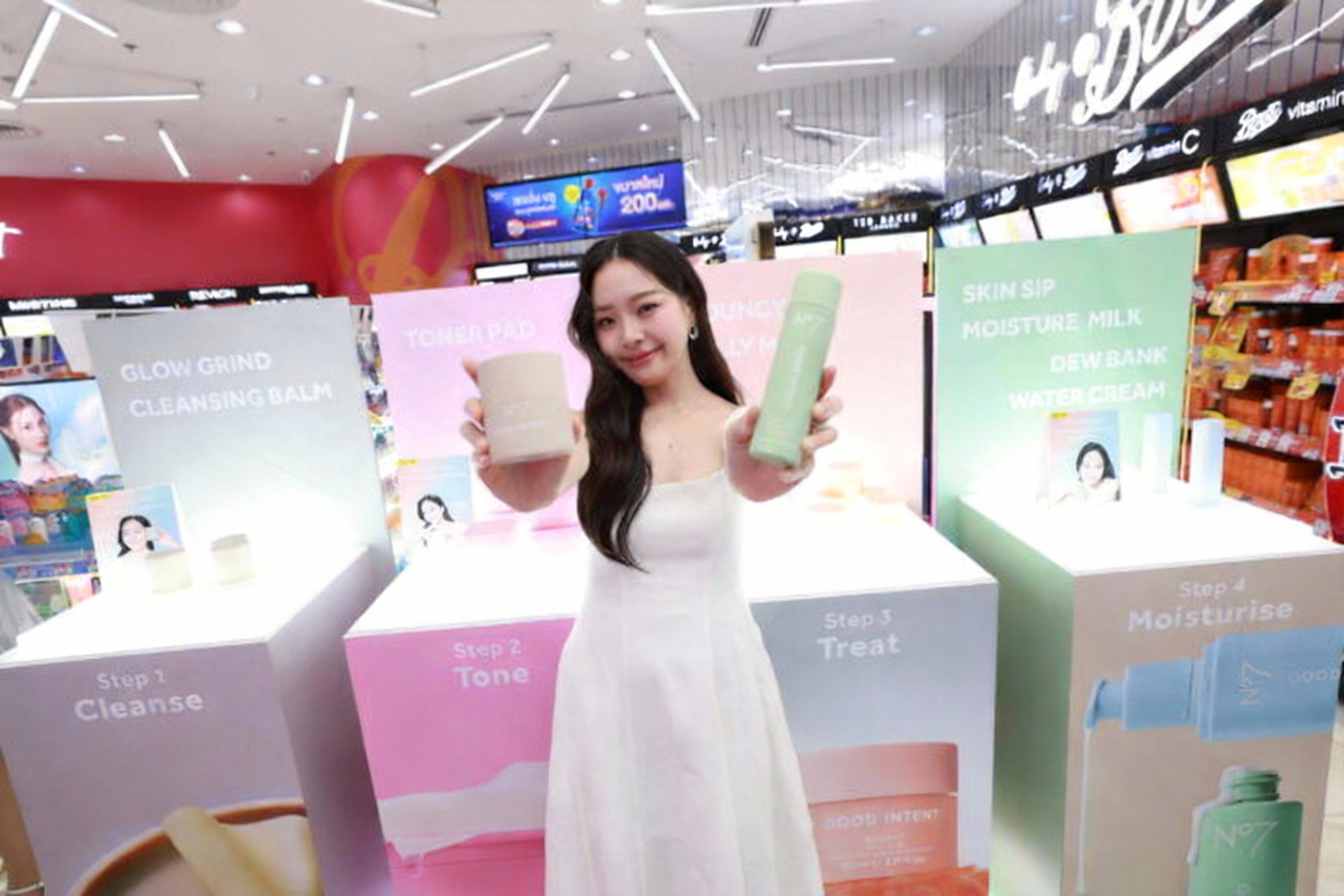 No7 GOOD INTENT วางโครงกRoutine ให้เข้าใจง่าย ครอบคลุมตั้งแต่ขั้นตอนทำความสะอาดไปจนถึงล็อคความชุ่มชื้น โดยแบ่งเป็น 4 สเต็ปหลัก: Cleanse, Tone, Treat, Moisturize พร้อมผลิตภัณฑ์ที่ออกแบบมาให้ใช้ร่วมกันได้อย่างลงตัว