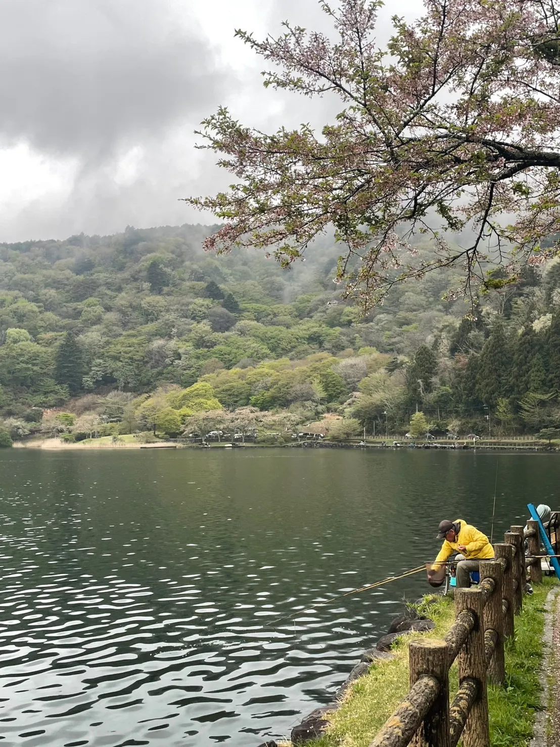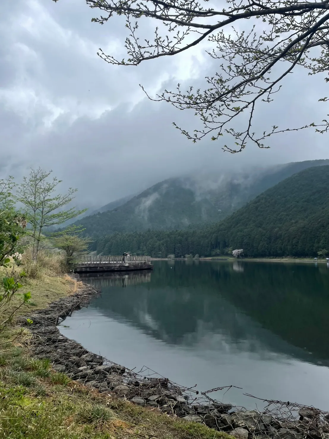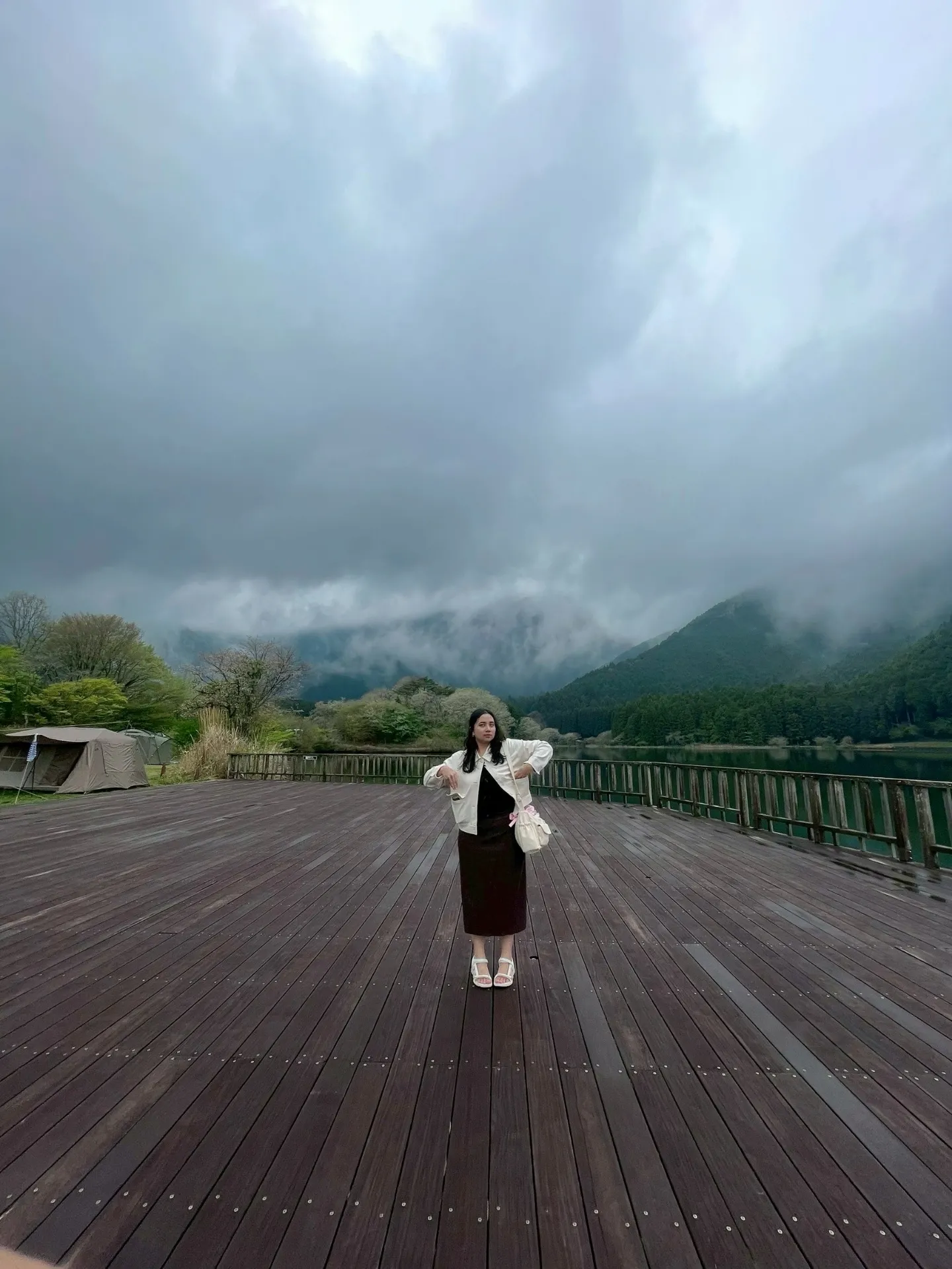 วันที่ไปแม้หมอกเยอะ ฝนปรอย ๆ จนมองไม่เห็นฟูจิ แต่บรรยากาศธรรมชาติมาก มีหมอกจาง ๆ ลอยเหนือน้ำ สวยไปอีกแบบ