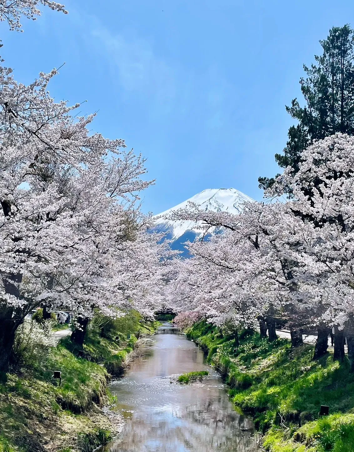 มุมท้ายหมู่บ้านจะมีสะพาน ลำธาร ซากุระ และวิวฟูจิแบบครบเซ็ต ใครชอบภาพฟีลชนบทญี่ปุ่นต้องไม่พลาด