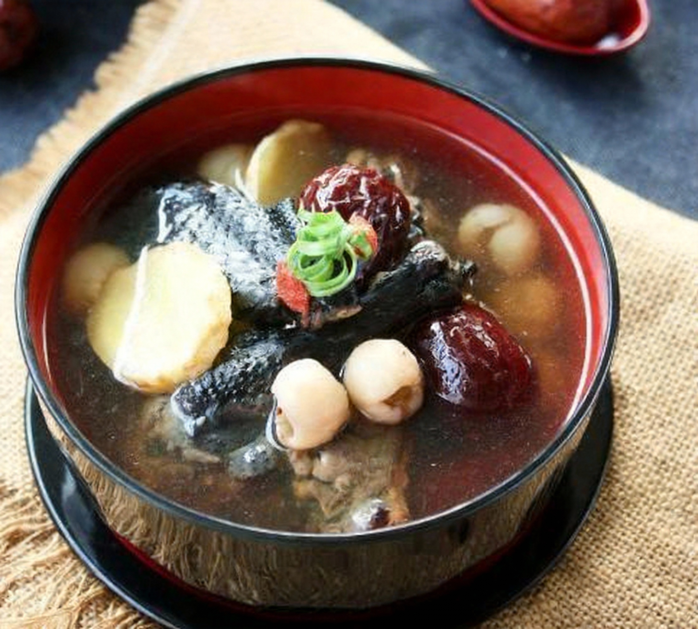 2. ซุปไก่ดำกับเทียนหม่า (乌鸡天麻汤, Black Chicken with Gastrodia Soup) 🍵