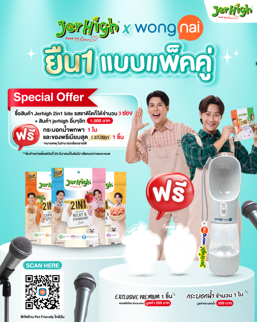 JerHigh ผนึกกำลังกับ Wongnai ดันขนมหมาออกจากชามอาหาร สู่การเป็นส่วนหนึ่งของไลฟ์สไตล์คนรักสัตว์ เปิดตัว “2in1 Bite” ขนมหมาสูตรใหม่ที่เกิดจาก Co-Creation กับอินฟลูเอนเซอร์สายหมาอย่างพี่จองและคัลแลน