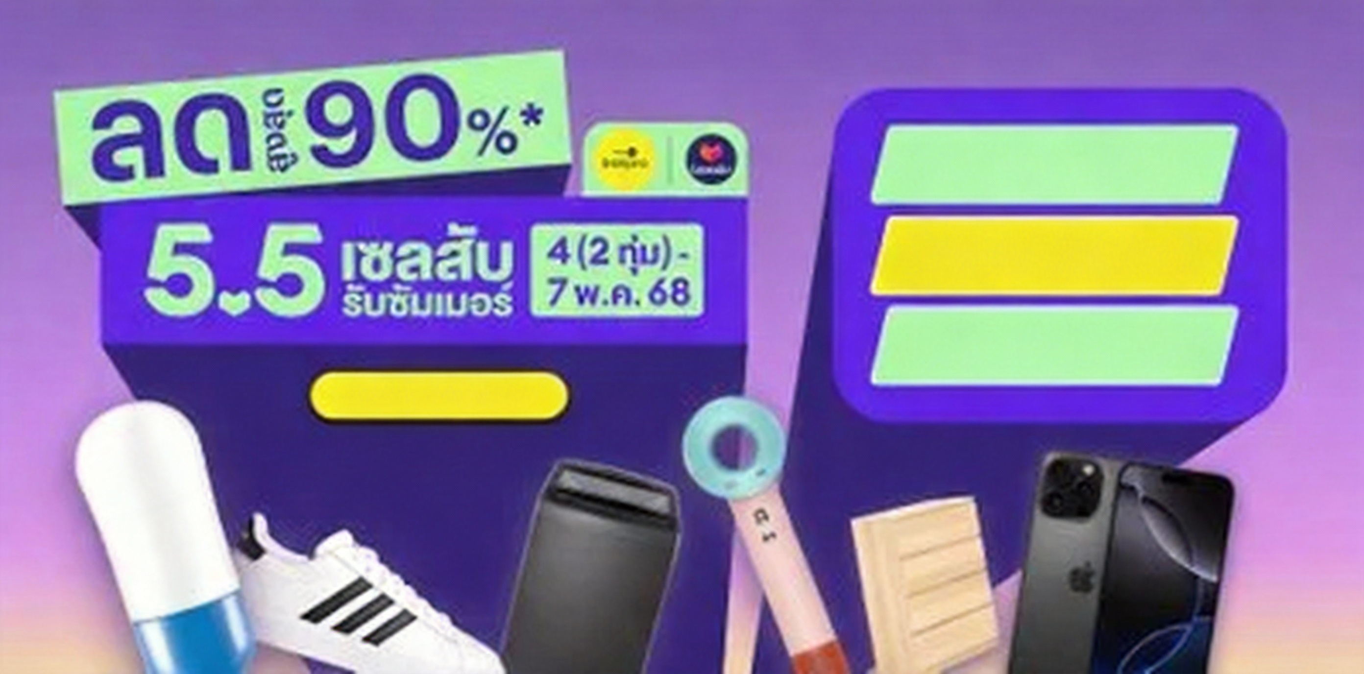 สรุปดีลเดือด Lazada 5.5 เซลสับรับซัมเมอร์ ลดแรงสูงสุดถึง 90%* แถมมีโปรส่งฟรีแบบไม่ง้อขั้นต่ำ ช่วงต้นเดือนเตรียมช้อปให้ตะกร้าแตกได้เลย ระหว่างวันที่ 4 (2 ทุ่ม) - 7 พ.ค. 68