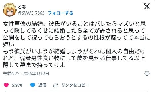 ช่วงปีใหม่ของญี่ปุ่น นอกจากเสียงระฆังวัดและคำอวยพรแล้ว ยังมี “ข่าวแต่งงานของนักพากย์และไอดอล” ที่กลายเป็นธรรมเนียมประจำฤดูกาล และปีนี้ก็ไม่พลาดจะมีดราม่ารับศักราชใหม่แบบไฟลุก เมื่อชื่อของ Tomori Kusunoki ถูกพูดถึงอย่างหนักในโลกออนไลน์