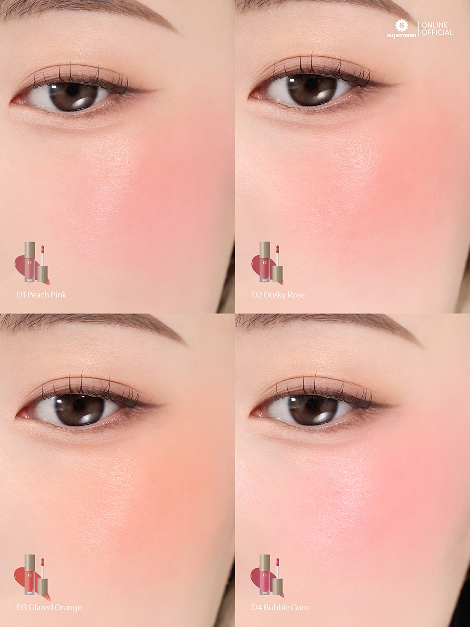 บลัชออนเนื้อลิควิดของ SUPERMOM สามารถทาซ้ำเพื่อเพิ่มความเข้มของสีได้โดยไม่เป็นคราบ ช่วยให้ผู้ใช้สามารถปรับลุคได้ตามสไตล์ของตัวเอง ตั้งแต่แก้มใสแบบธรรมชาติ ไปจนถึงลุคสดใสสำหรับโอกาสพิเศษ