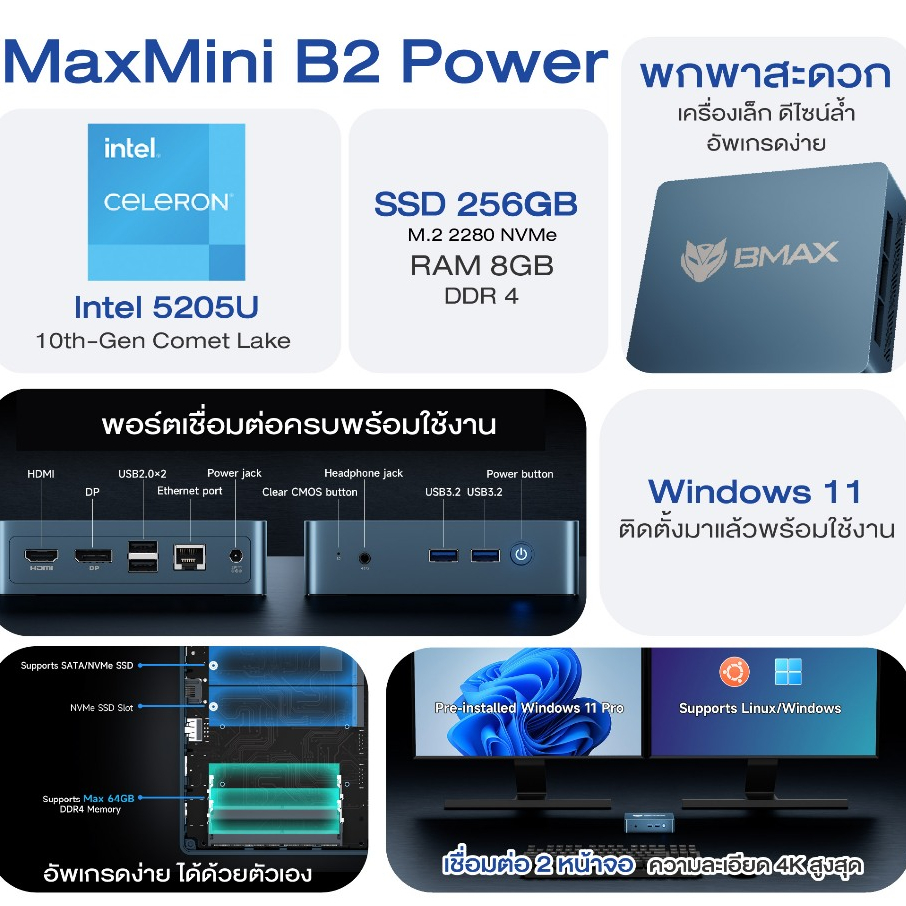 Mini PC ส่วนใหญ่มักมาพร้อม Windows 11 หรือ Linux ติดตั้งมาให้เรียบร้อย เปิดกล่องก็พร้อมทำงานได้ทันที