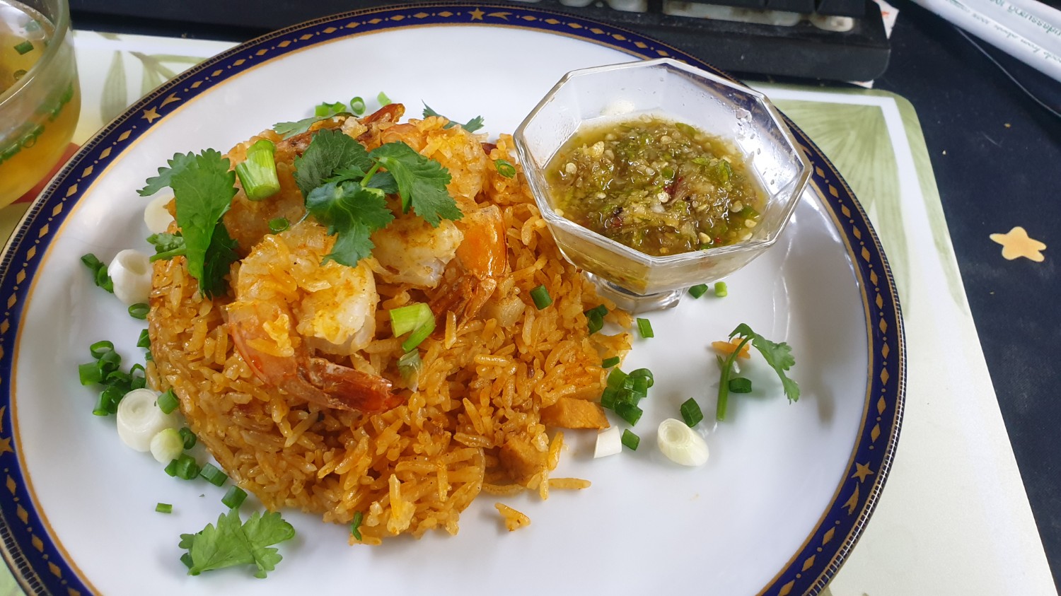 เพราะข้าวอบมันกุ้งเป็นเมนูที่สีสวยอยู่แล้ว ถ้าจัดจานเล็กน้อยจะช่วยเพิ่มความน่ากินขึ้นมาก