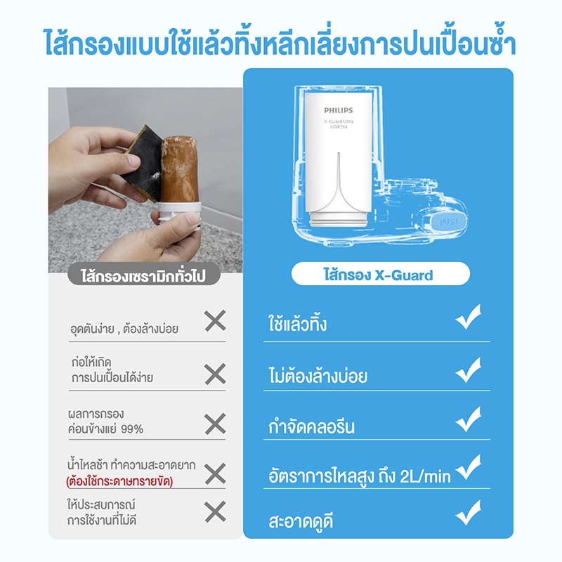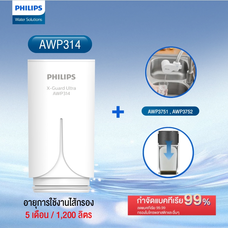 ไส้กรองรุ่นนี้เข้ากันได้กับหัวก๊อกกรองน้ำ Philips รุ่น