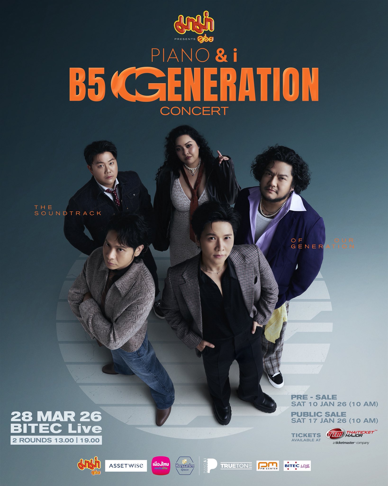 การกลับมาของ B5 ในปี 2569 ไม่ได้เป็นเพียงข่าวดีของวงการเพลงไทย แต่คือโมเมนต์ที่เรียกได้ว่า “ระดับตำนาน” สำหรับผู้ฟังหลายเจเนอเรชัน เพราะนี่คือการรวมตัวครั้งสำคัญในรอบ 23 ปี ของศิลปินคุณภาพทั้งห้าผู้เคยสร้างผลงานที่ทรงอิทธิพลให้วงการเพลงไทยเมื่อยุคเบเกอรี่มิวสิกเฟื่องฟูอย่างที่สุด และในปีนี้ พวกเขากลับมาอีกครั้ง พร้อมคอนเสิร์ตใหญ่ “มาม่า Presents PIANO&i B5 Generation Concert” ที่เตรียมจัดเต็มทั้งเสียงร้อง บทเพลง และความคิดถึงที่อัดแน่นในใจแฟน ๆ ทุกคนมาตลอดสองทศวรรษกว่า