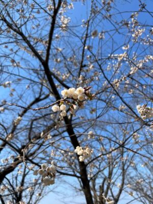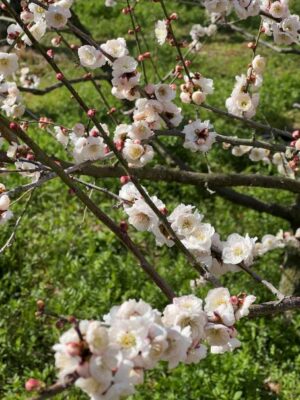 แม้ช่วงที่ไปดอกซากุระยังไม่บาน แต่สวนก็ยังอบอุ่นด้วยดอกบ๊วยที่บานรอต้อนรับ เติมสีสันให้วิวสวนสีเขียวดูละมุนขึ้นอีกหลายระดับ
