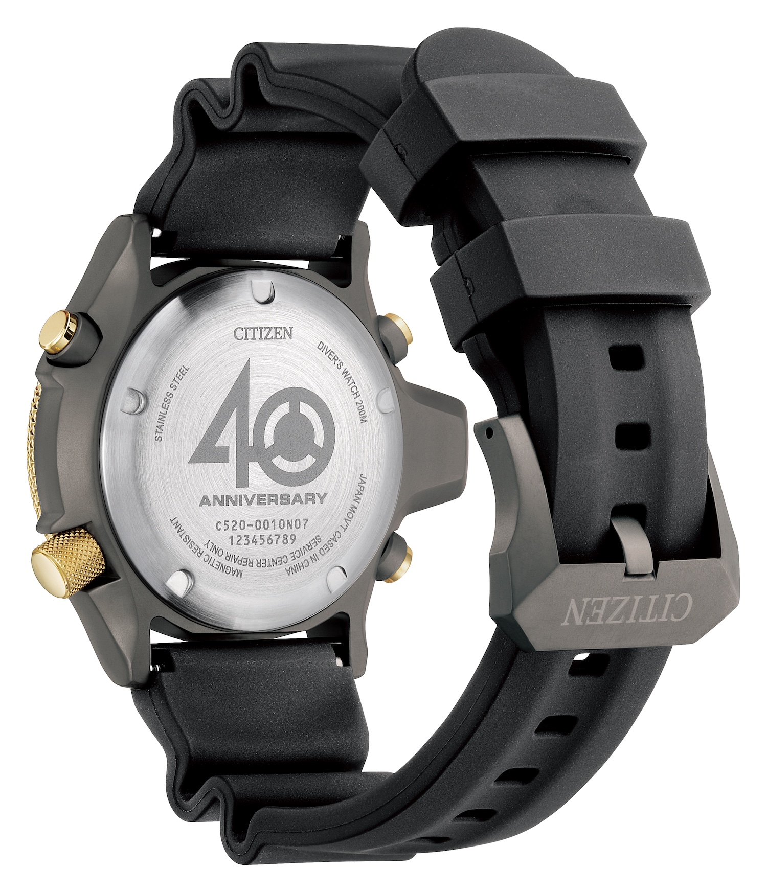 ด้านหลังตัวเรือนเป็นฝาแบบขันเกลียว ช่วยให้กันน้ำได้ถึง 200 เมตร แถมยังมีการสลักโลโก้ฉลองครบรอบ 40 ปี เพิ่มความรู้สึกพิเศษให้กับรุ่นนี้ขึ้นไปอีกระดับ