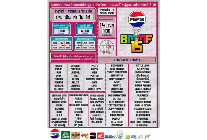 ปีนี้จัดหนักถึง 14 เวที ดีไซน์ใหญ่ขึ้น สนุกขึ้น และแปลกใหม่กว่าเดิม เชื่อมแฟนเพลงทุกสายเข้าหากัน ทั้งป็อบ ร็อก อินดี้ เพื่อชีวิต หมอลำ และลูกทุ่ง แบ่งเป็นวันละ 7 เวที เสาร์ 7 เวที อาทิตย์ 7 เวที เดินวนทั้งคืนยังกลัวเก็บไม่หมด