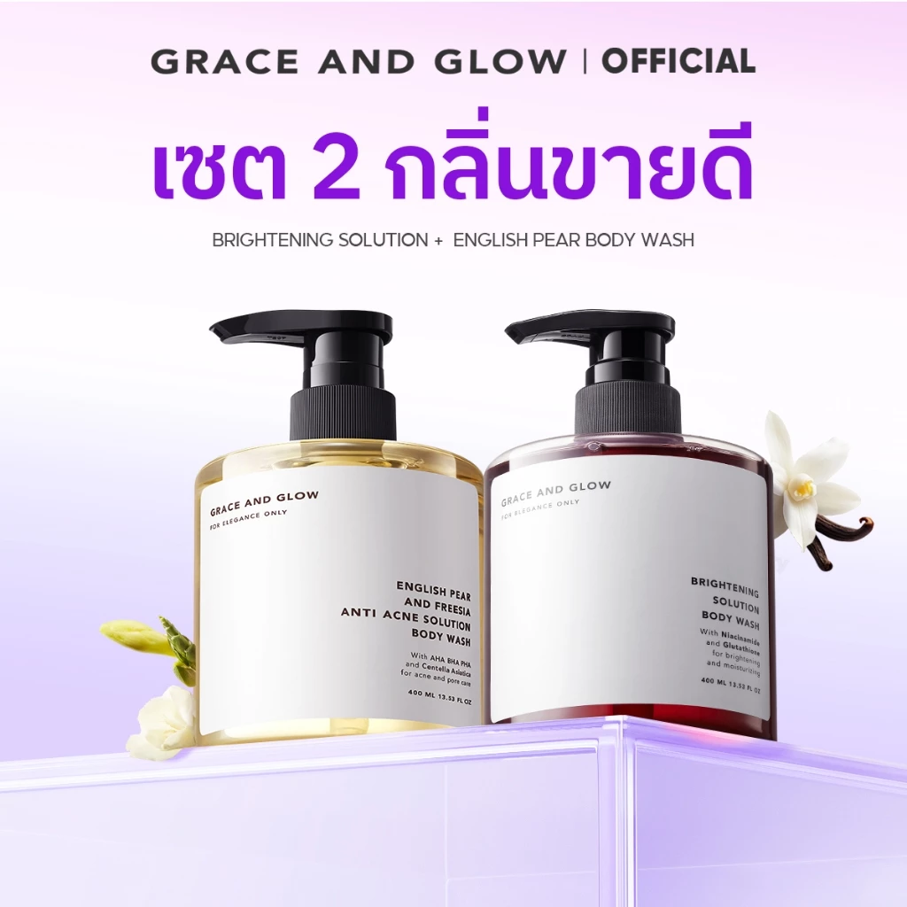 【เซตคู่】Grace and Glow Brightening Solution + English Pear Body Wash 400ML x 2 คือคำตอบที่ลงตัว