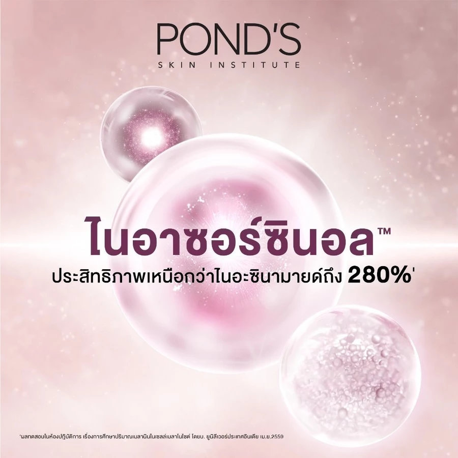 Pond’s ใช้สารบำรุงที่เป็นที่นิยม เช่น ไนอาซินาไมด์ วิตามินซี ไฮยาลูรอน และเรตินอล