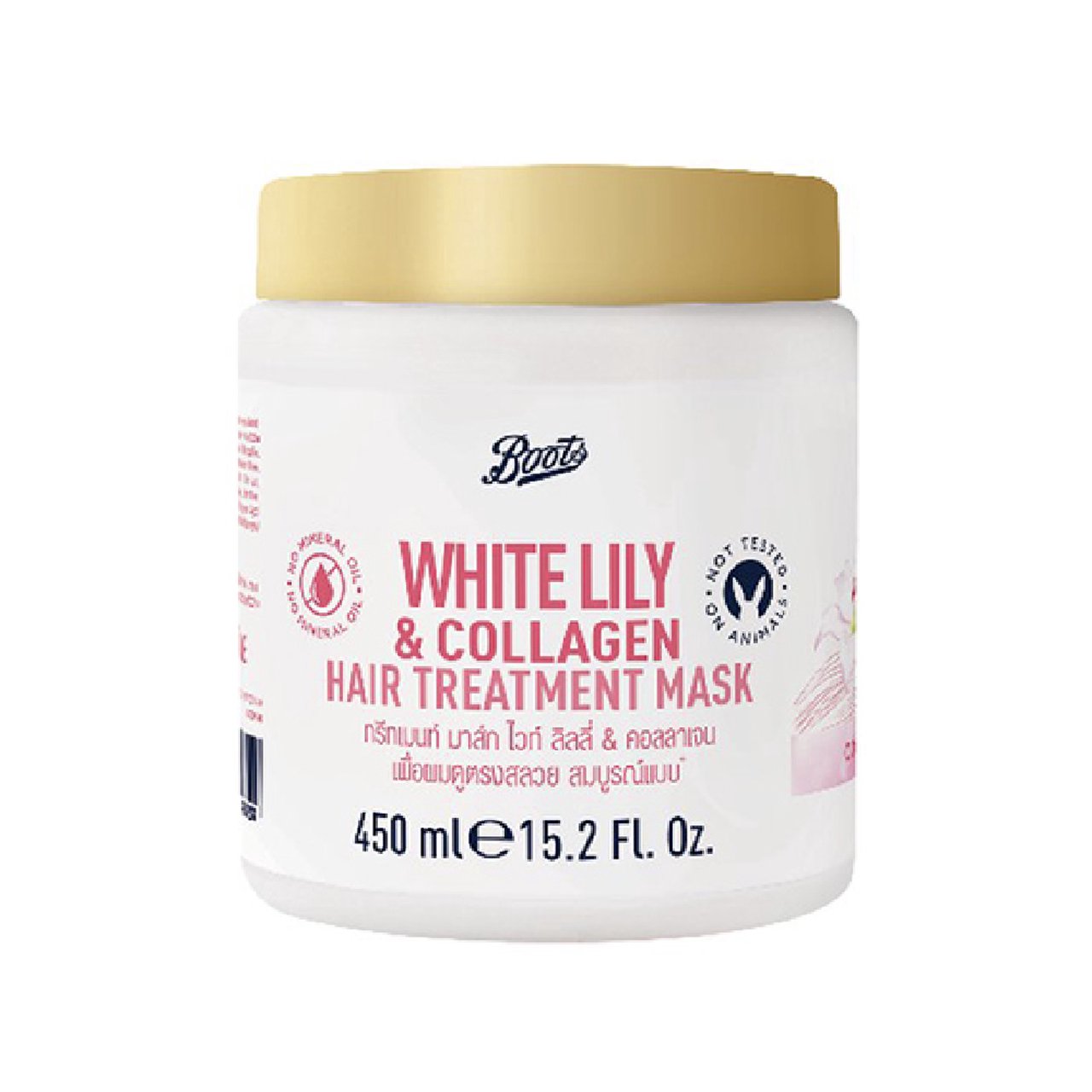1. Boots ไวท์ ลิลลี่ แอนด์ คอลลาเจน แฮร์ ทรีทเมนท์ มาส์ก