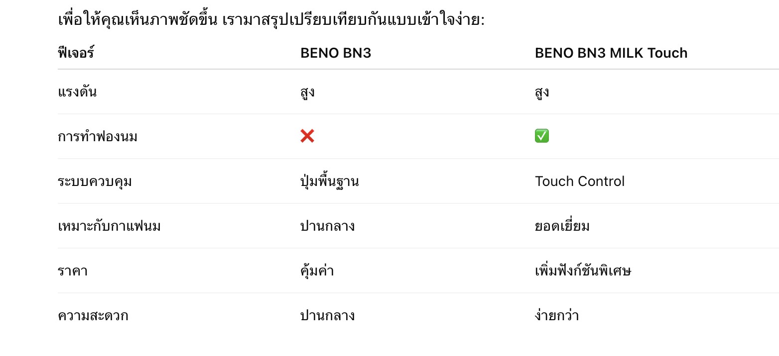 🔍 เปรียบเทียบ BENO BN3 และ BN3 MILK Touch — รุ่นไหนเหมาะกับคุณ?