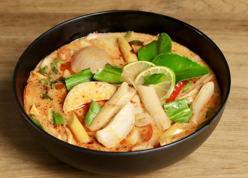 สายซุปจัดจ้านต้องไม่พลาด ต้มยำน้ำข้นโปรตีนเกษตร รสเปรี้ยวเค็มมันกำลังดี ซดกับข้าวสวยร้อน ๆ คือฟินสุดในมื้อเจ