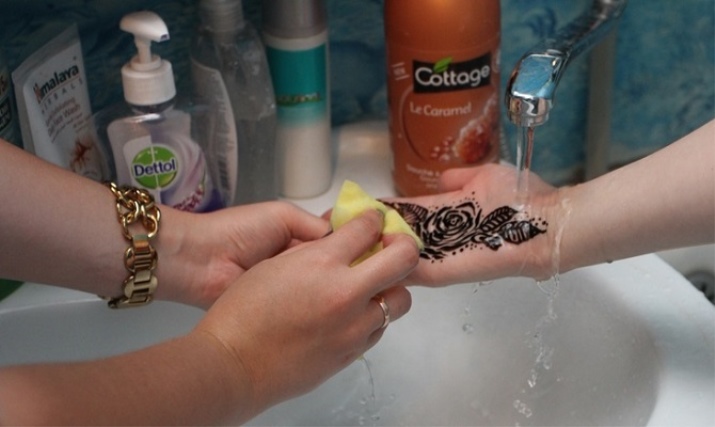 หลังทาเฮนน่าใหม่ ๆ ถ้ายังไม่แห้งหรือติดผิวลึก การล้างออกจะง่ายมาก แค่ล้างด้วยน้ำในทันที บางครั้งแทบไม่เหลือคราบ