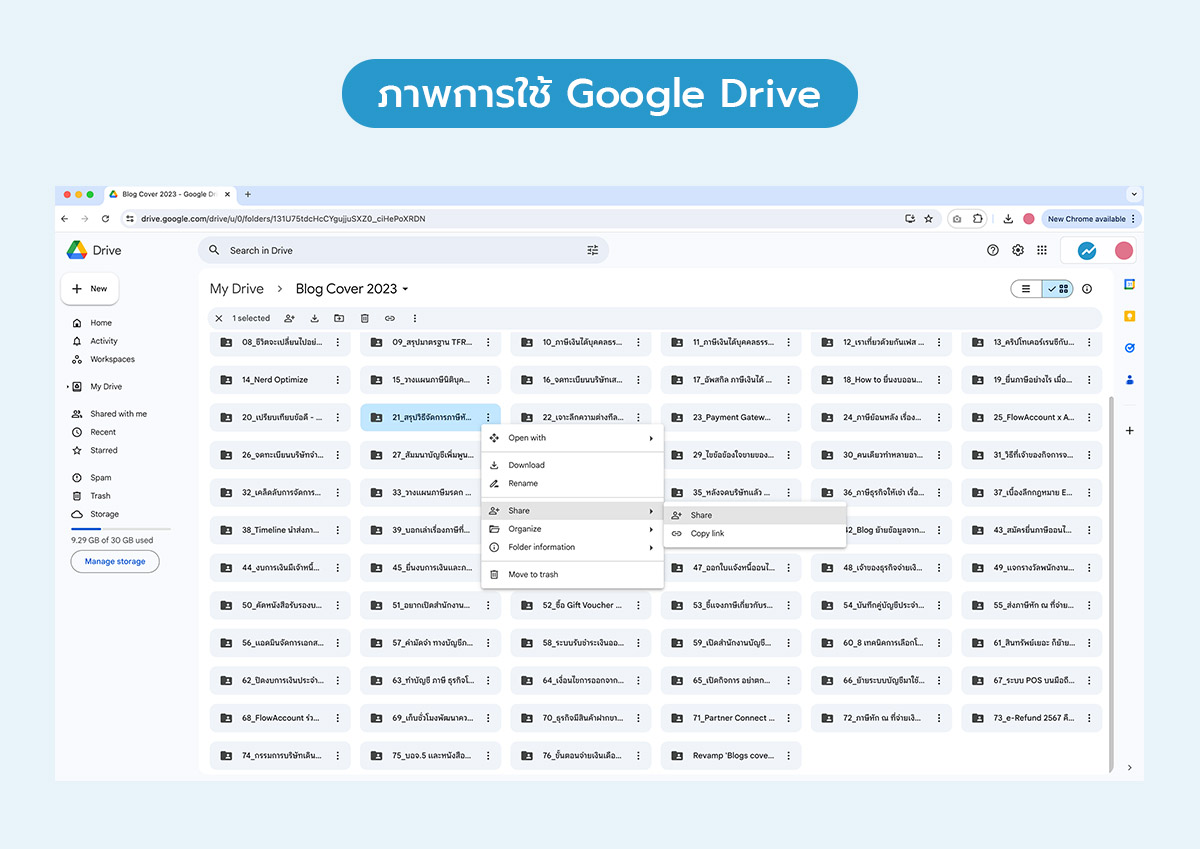 Google Drive: พื้นที่เก็บไฟล์บนคลาวด์สำหรับทั้งองค์กร จัดเก็บ แชร์ และเข้าถึงไฟล์สำคัญได้อย่างปลอดภัย