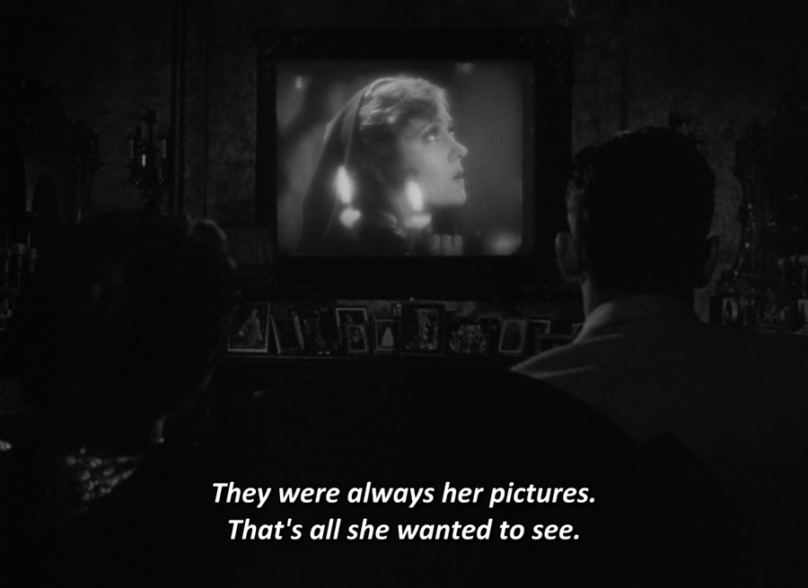 หนึ่งในฉากหลอนที่สุดคือการที่ Norma เปิดฟิล์ม Queen Kelly (1929) มาฉายให้ Joe ดู