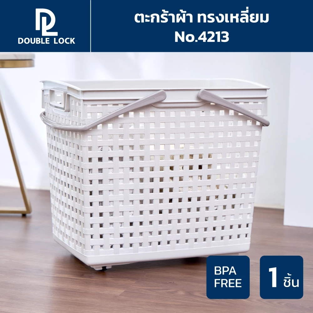 Double Lock ตะกร้าพลาสติก รุ่น 4213 เป็นตัวช่วยจัดการผ้ารอซักที่ทั้งแข็งแรง ใช้งานสะดวก และช่วยลดกลิ่นอับได้จริง ด้วยการออกแบบที่คิดถึงการใช้งานในชีวิตประจำวัน เหมาะกับทุกบ้านที่ต้องการความเป็นระเบียบและความสะอาดอย่างต่อเนื่อง