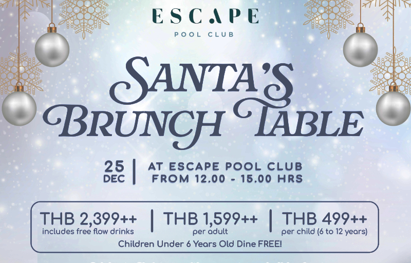 ตามมาติดๆ ด้วย CHRISTMAS BRUNCH ริมสระที่ Escape Pool Club ให้คุณเริ่มวันคริสต์มาสแบบชิลๆ ด้วยบรันช์จัดเต็ม ทั้งอาหารและบรรยากาศรีสอร์ตทรอปิคอล