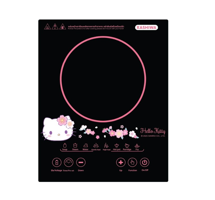 เตาแม่เหล็กไฟฟ้ารุ่นนี้โดดเด่นตั้งแต่แรกเห็นด้วยดีไซน์ลาย Hello Kitty ที่ออกแบบมาให้เข้ากับครัวสมัยใหม่และกลุ่มผู้ใช้ที่ให้ความสำคัญกับความน่ารักควบคู่การใช้งานจริง ภายใต้ภาพลักษณ์ที่ดูเป็นมิตร รุ่นนี้มาพร้อมกำลังไฟระดับ 2400 วัตต์ ซึ่งถือว่าเพียงพอสำหรับการทำอาหารหลากหลายรูปแบบ ตั้งแต่ต้ม ซุป ผัด ไปจนถึงเมนูที่ต้องใช้ความร้อนต่อเนื่อง