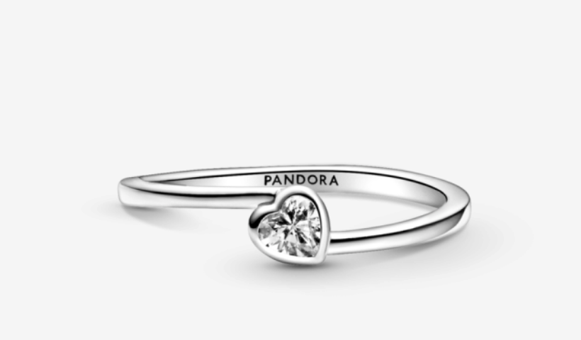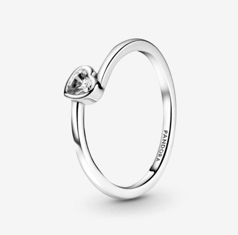 1. Pandora Clear Tilted Heart Solitaire Ring