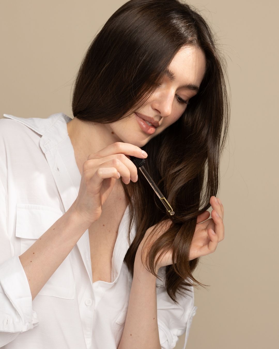 เพียง 1–2 หยดก็เพียงพอ ตรงปลายผมเป็นหลัก