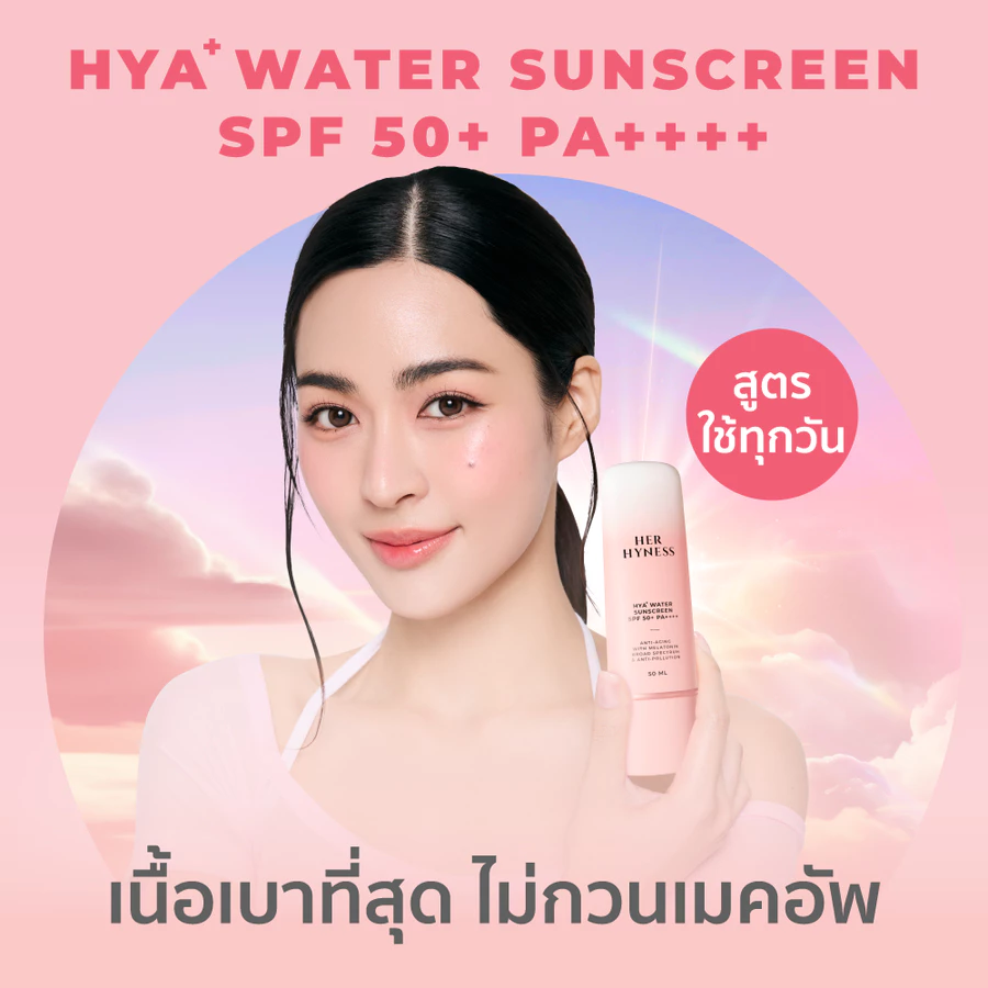 HER HYNESS HYA+ WATER SUNSCREEN 50ML คือกันแดดที่ตอบโจทย์คนยุคใหม่ ที่ต้องการการปกป้องผิวควบคู่กับการบำรุงในขั้นตอนเดียว