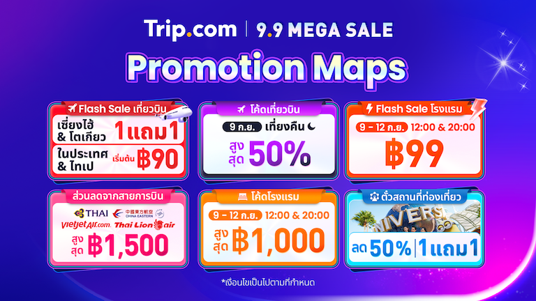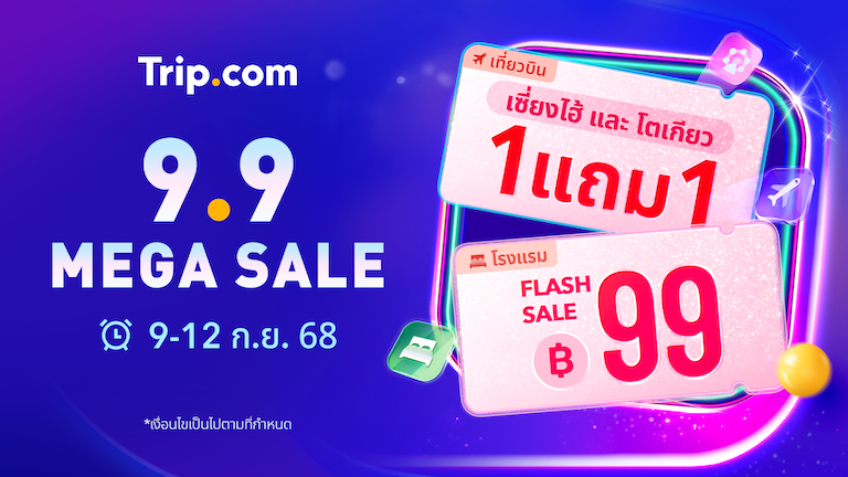 Trip.com ขยับเปิดศึกท่องเที่ยวครั้งใหญ่ กับแคมเปญ 9.9 Mega Sale จัดเต็มระหว่างวันที่ 9-12 กันยายน 2568