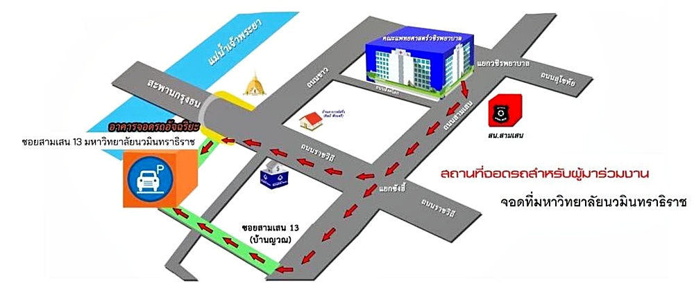 หรือใช้เส้นทาง ถนนขาว ซึ่งเป็นถนนที่ตั้งของมหาวิทยาลัย