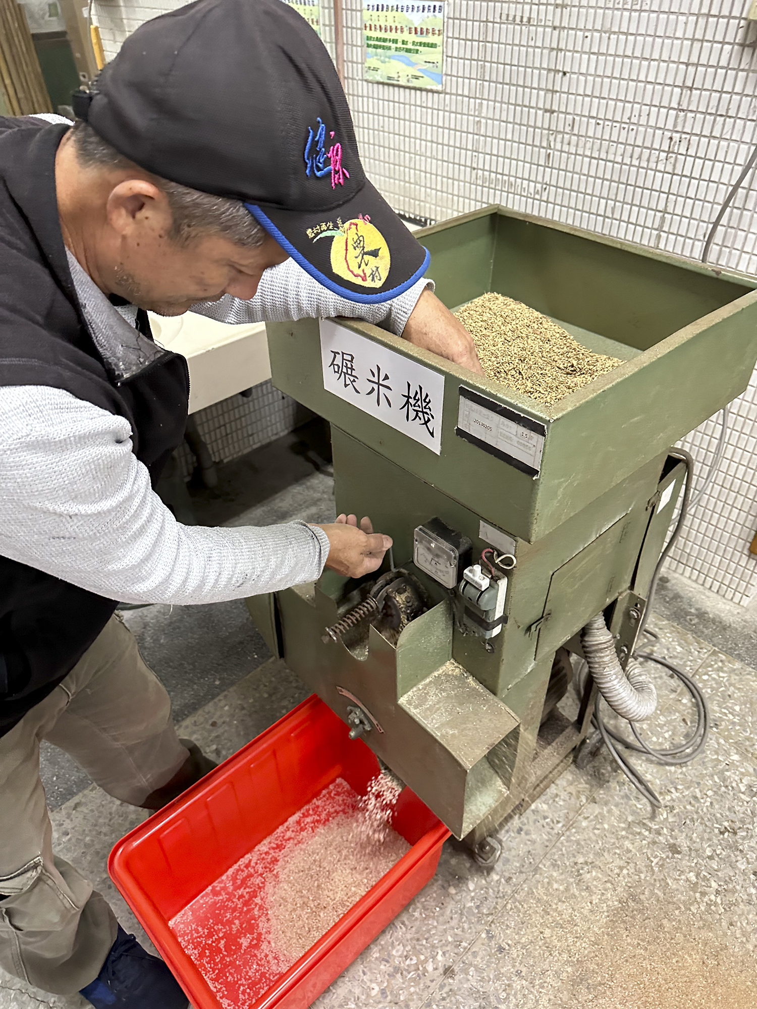 ท่ามกลางไอหมอกนั้น คุณเฉินหย่งหรู (陳永如) ชาวสวนดอกไม้ และหัวหน้าชมรมนาข้าวเผิงไหล แบกถุงข้าวเปลือกพันธุ์นาคามูระสามถุงเล็กที่ตากแห้งแล้ว เดินมุ่งหน้าไปโรงเรียนประถมหูเถียน (湖田) เพื่อยืมเครื่องมือสีข้าวโบราณ