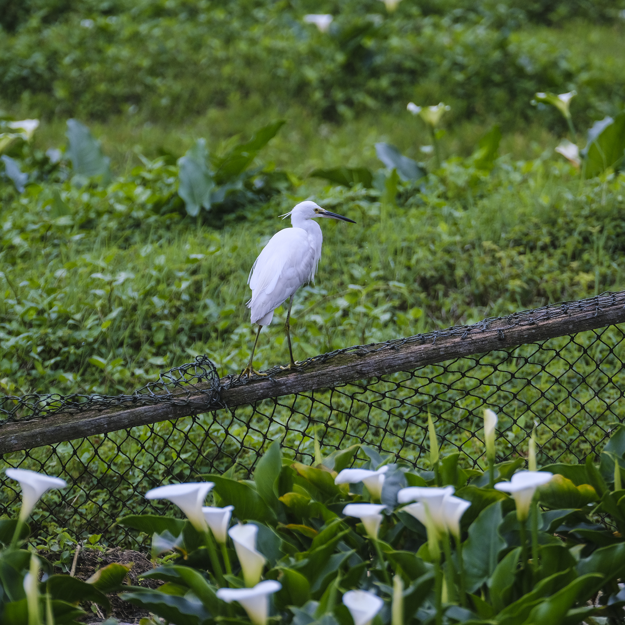 นกยางเปียเดินเล่นอย่างสบายใจกลางไร่คาลล่า ลิลลี่ เสียงลมเบา ๆ กลบเสียงเมืองจนเงียบสนิท เหมาะกับคนที่อยากปีนเขาแบบได้พักใจไปพร้อมกัน