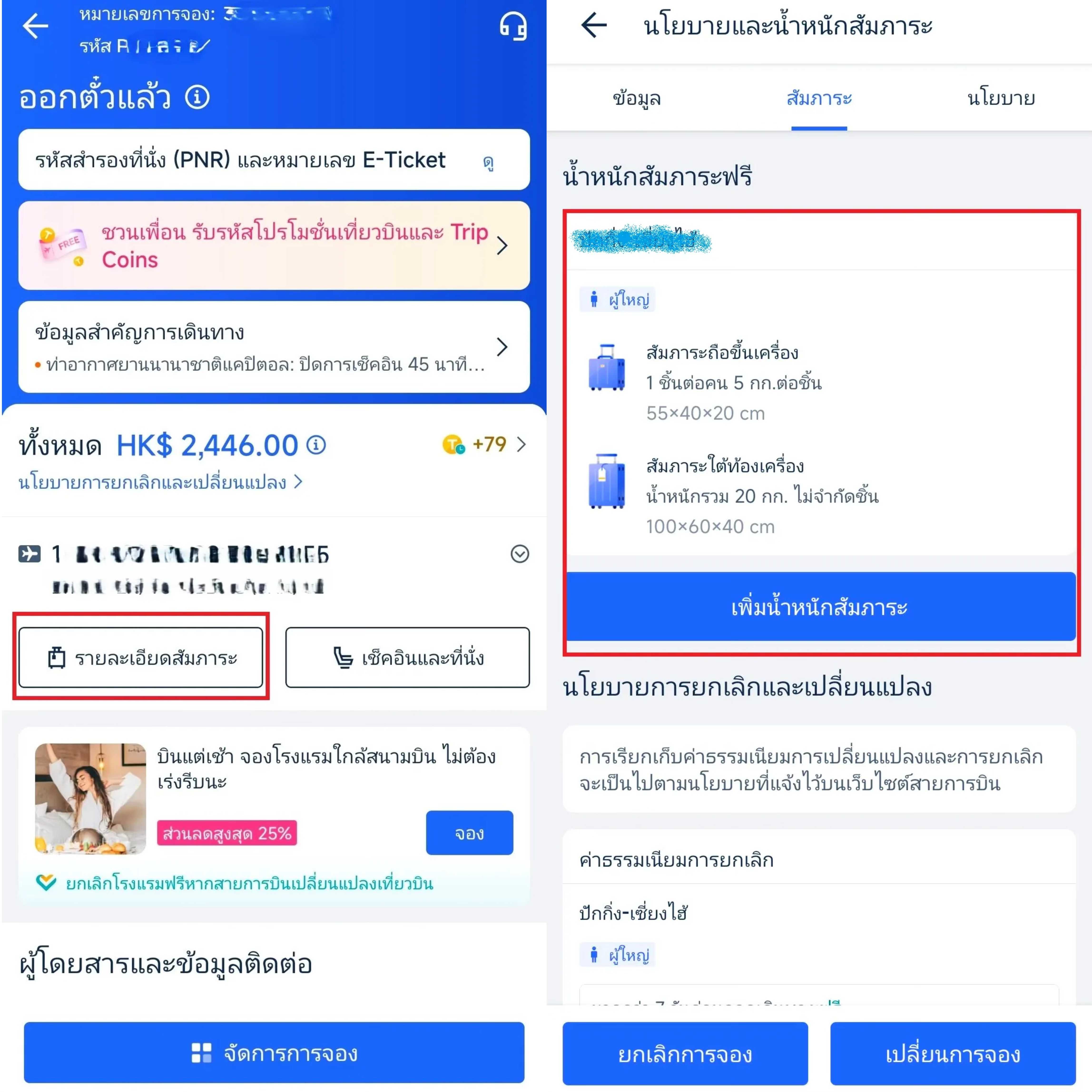ก่อนเดินทางควรเช็กสิทธิ์ในหน้า “รายละเอียดสัมภาระ” บน Trip.com เพื่อป้องกันการโหลดเกินน้ำหนักโดยไม่รู้ตัว