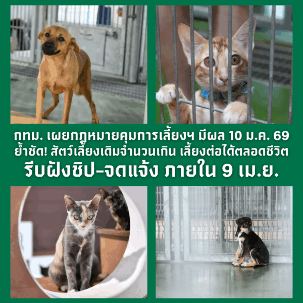 ถ้าเป็นสัตว์เก่าและเลี้ยงเกินจำนวน ให้ รีบฝังชิป จดทะเบียน และแจ้งจำนวน ให้ทันภายใน 9 เม.ย. 69