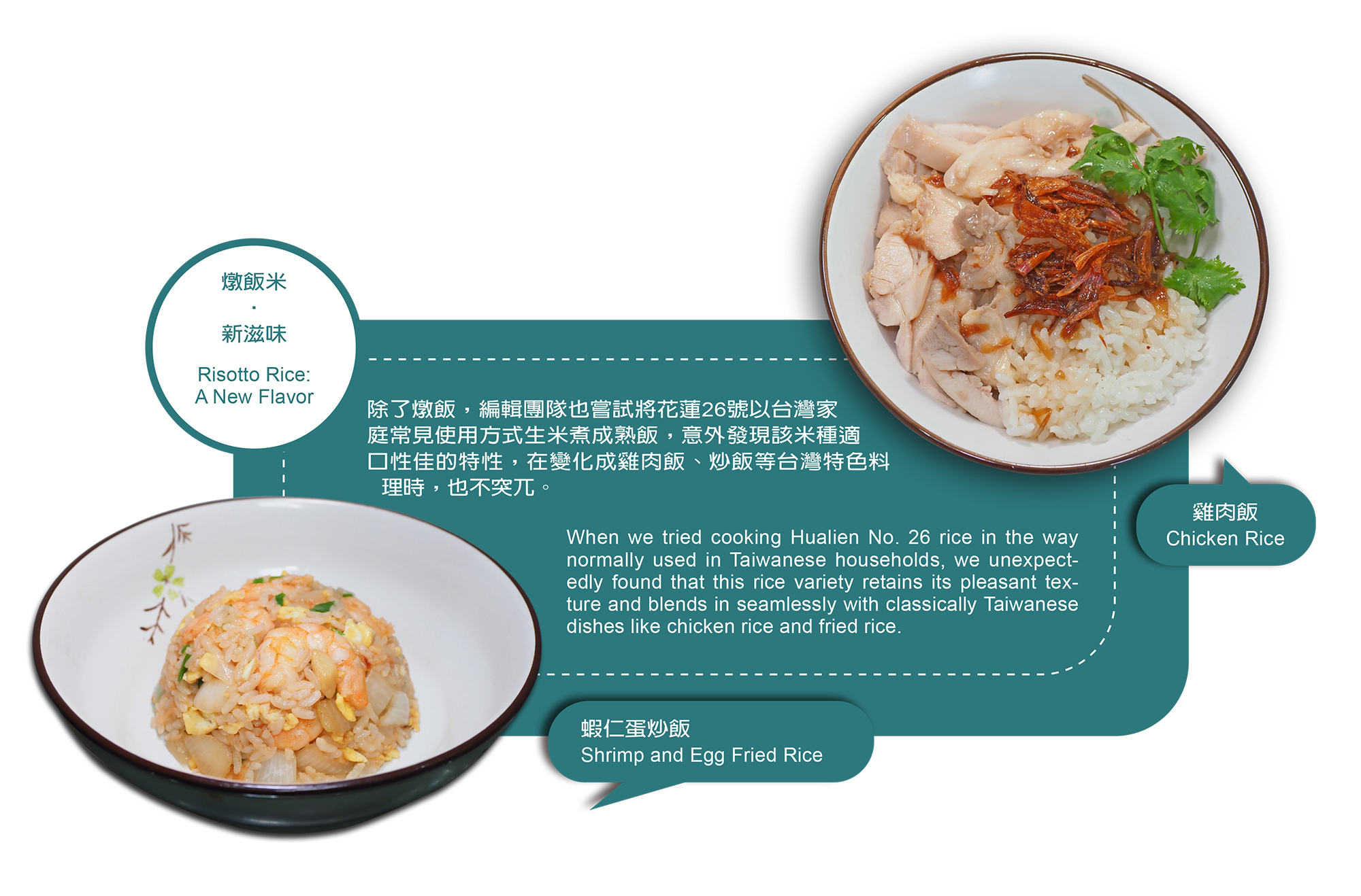 ทีมบรรณาธิการยังลองนำข้าวฮัวเหลียน 26 ไปหุงกินแบบบ้าน ๆ ในสไตล์ไต้หวัน จนพบแบบไม่ตั้งใจว่า ข้าวพันธุ์นี้นำไปทำเมนูง่าย ๆ อย่างข้าวหน้าไก่หรือข้าวผัด ก็น่ากินไม่แพ้กัน และเข้ากับอาหารไต้หวันยอดนิยมได้อย่างน่าประทับใจ