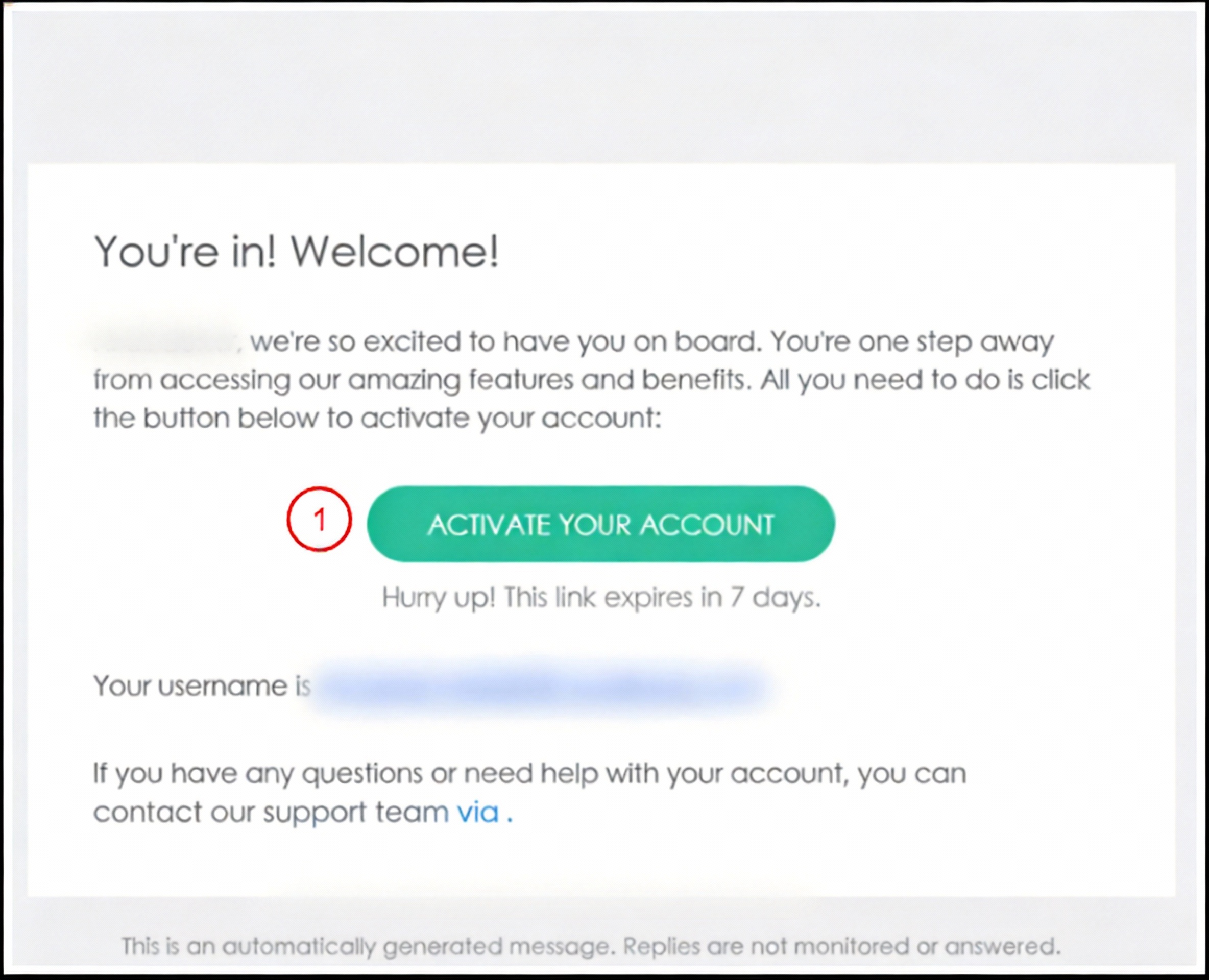 ในอีเมล ให้คลิกปุ่ม “เปิดใช้งานบัญชีของคุณ” เพื่อเริ่มตั้งค่า