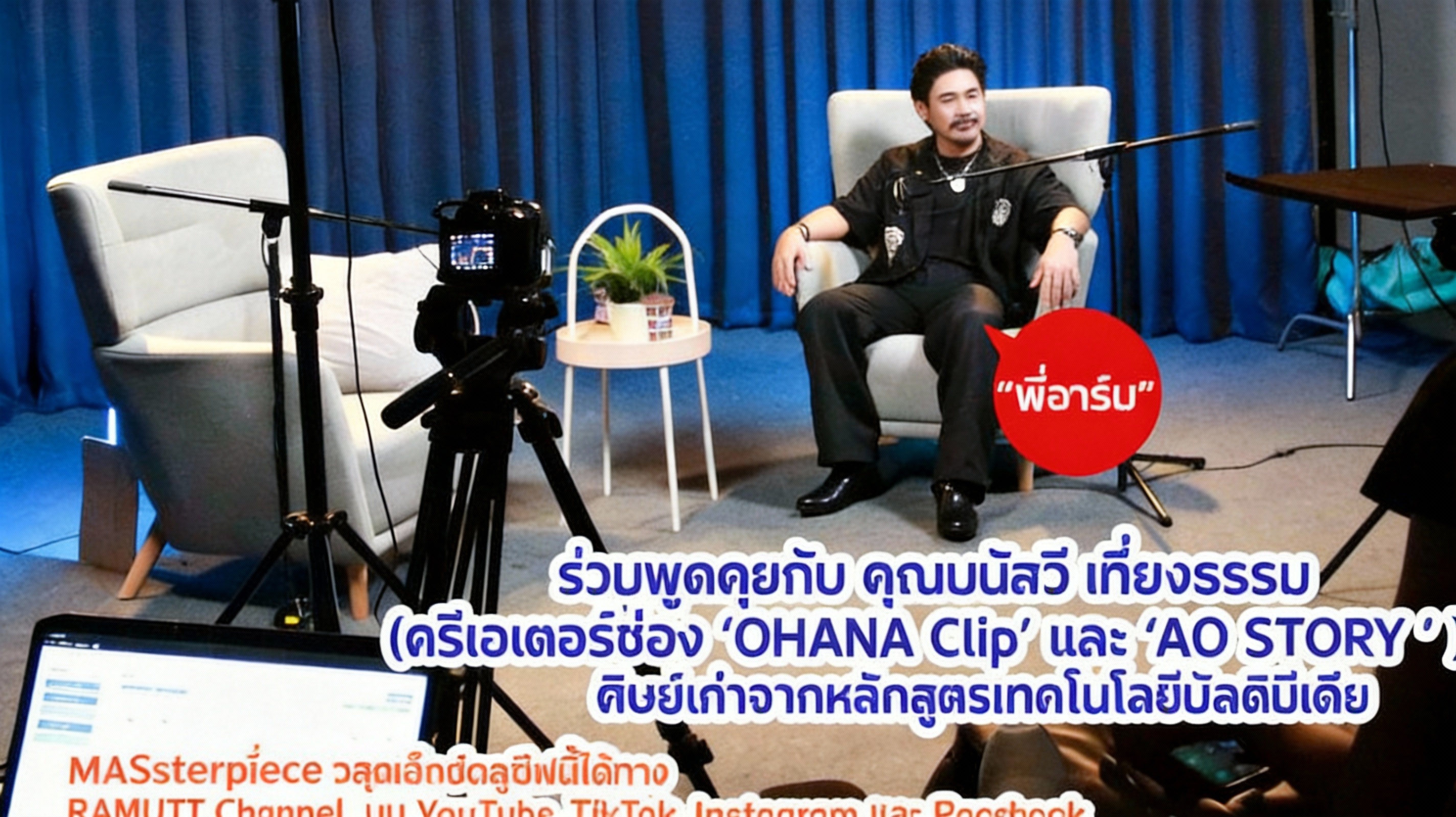 ‘พี่อาร์ม โอฮาน่า’ หรือ นายมนัสวี เที่ยงธรรม ศิษย์เก่าจากหลักสูตรเทคโนโลยีมัลติมีเดีย คณะเทคโนโลยีสื่อสารมวลชน มทร.ธัญบุรี กลับมาสร้างพลังบวกให้กับน้อง ๆ และใครหลายคนผ่านรายการ MASSterpiece Podcast