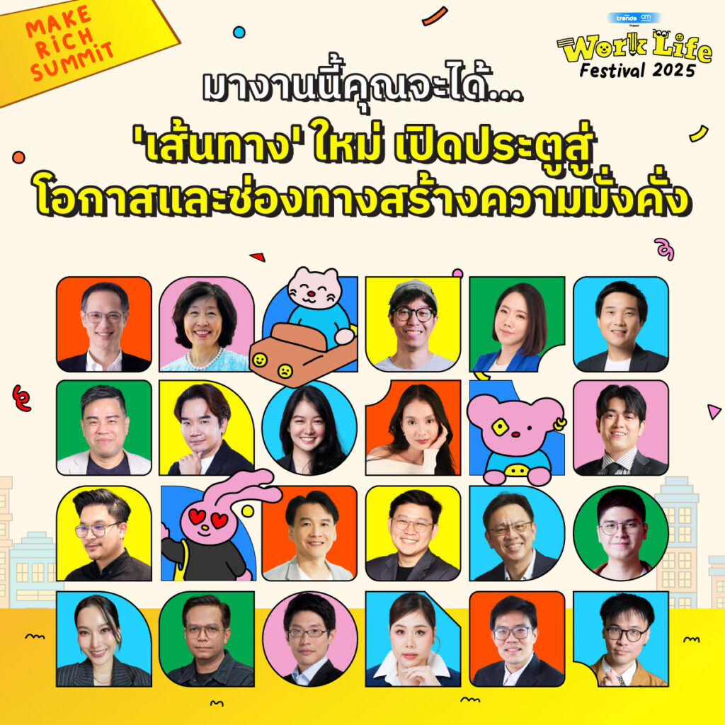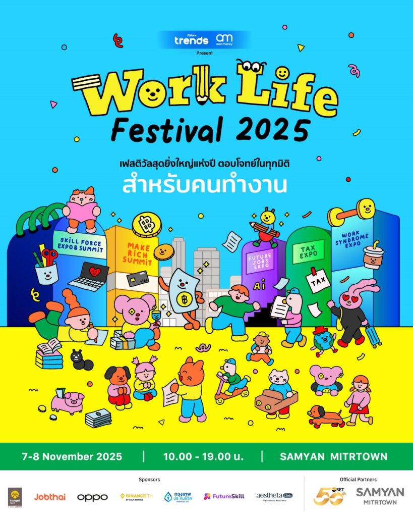 Work Life Festival 2025 จัดเต็มด้วย 2 เวทีหลัก และกว่า 40+ sessions ที่ถูกออกแบบมาเพื่อให้คุณอัปเดตเทรนด์สำคัญเกี่ยวกับโลกการทำงานและการเงินก่อนใคร