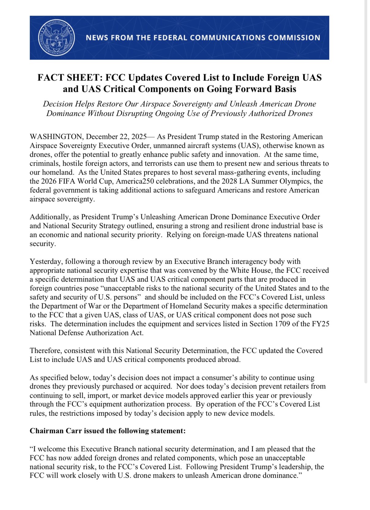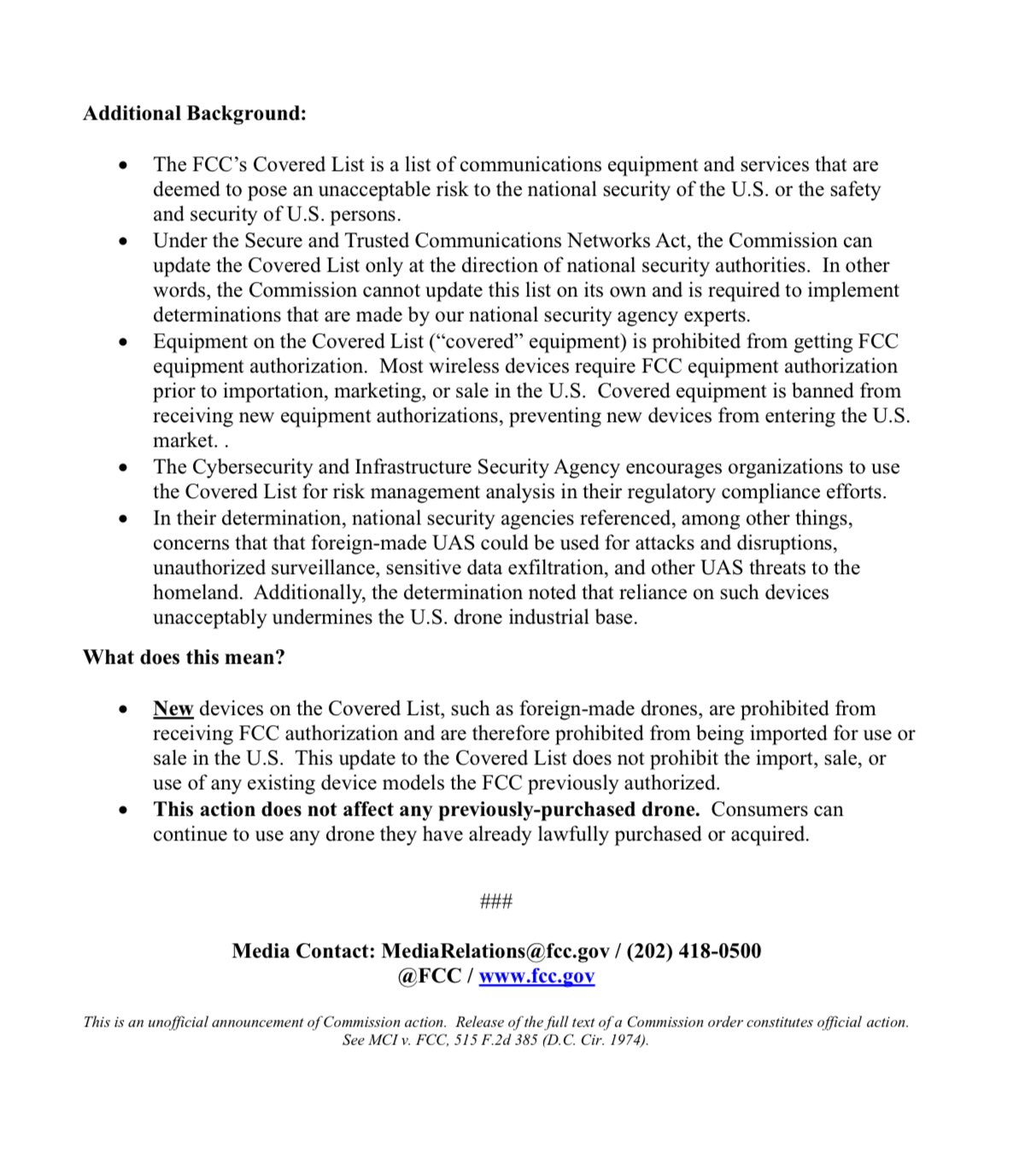 โดรนที่ผ่าน FCC แล้ว และวางขายอยู่ ยังขายได้ต่อ