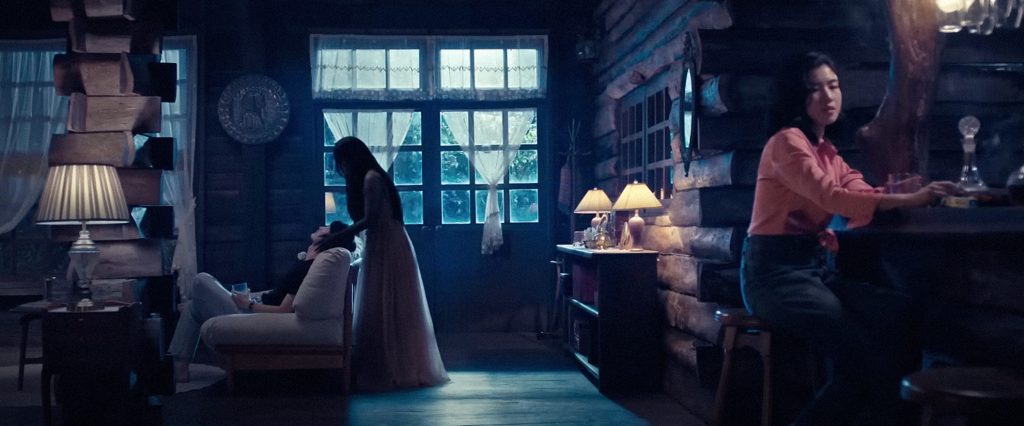 โลเคชั่นหลักของเรื่องคือบ้านสไตล์เคบินกลางป่า เงียบจนได้กลิ่นความ Evil Dead ลอยมาเบา ๆ